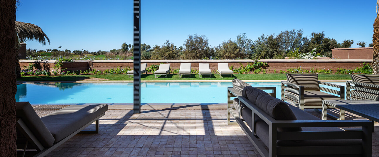 The villa is located in the famous Domaine du Royal Palm, km 12, route d’Amizmiz, 15 minutes from the Medina and all the activities of Marrakech. You will find around and less than 5 minutes away, 5 other golf courses (Samanah golf, Noria golf, Atlas Golf, Montgomerie golf, Argan golf), and 15 minutes away is the Assoufid golf course and the Palm golf Ourika.